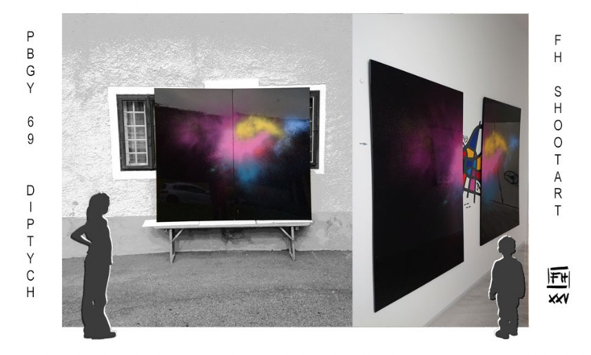 The immense energy of the shooting process is captured onto a dyptich surface.
